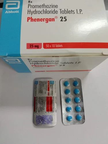 Phenergan Promethazine Hydrochloride 25mg Tablet used in the treatment of nausea and vomiting related to certain conditions like before/after surgery or motion sickness. It may also be used to treat allergic conditions suchPhenergan Promethazine Hydrochloride 25mg Tablet as rash, itching, and runny nose.